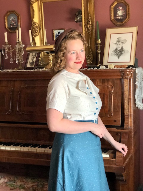 I did a mishmash of 3 different patterns for this outfit, not trying an exact recreation, but rather just inspired by the overall era and look.