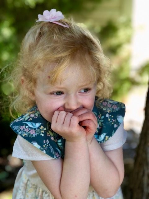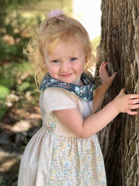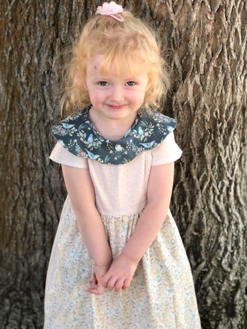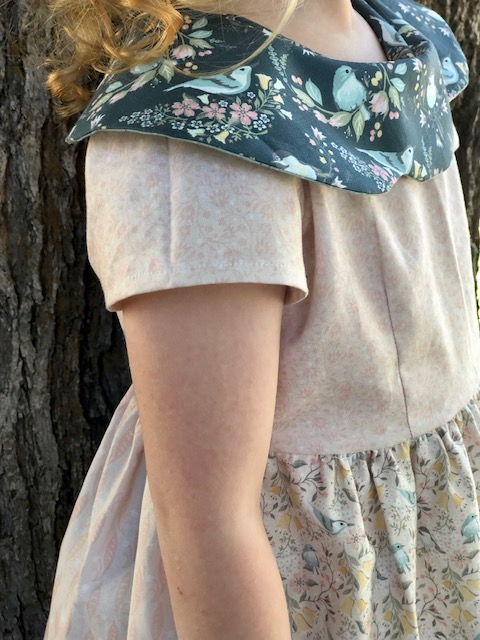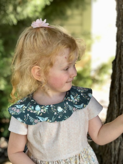 This sweet new fabric collection called Songbird Serenade from Poppie Cotton has the loveliest soft colors and prints. Of course my three-year-old was entranced by the “birdie” fabric, so I decided this would be a good time to try an idea I had in mind. An idea for a challenge. Could I make a dress out of a fat quarter bundle?