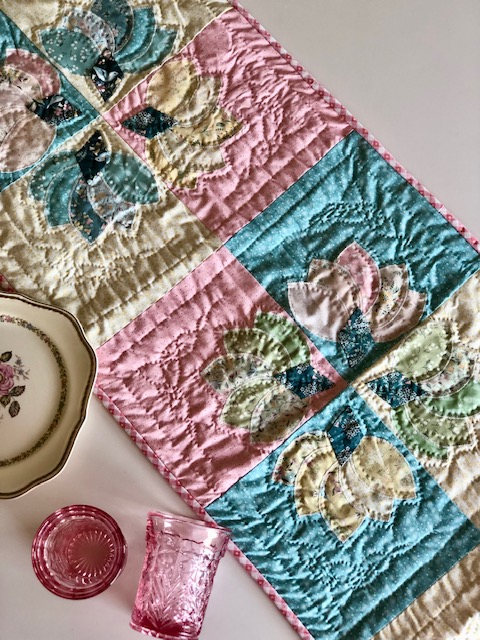 It's a generously sized runner, with 8” blocks. I just love the soft pastels.