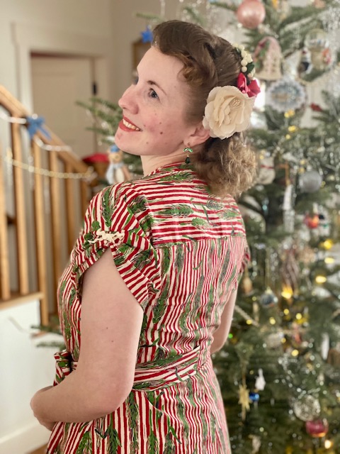 I went very bright and bold for Christmas this year with a length of vintage novelty fabric that I scored on Facebook Marketplace earlier this year. I quickly decided what I would do with it, and laid it away until December.