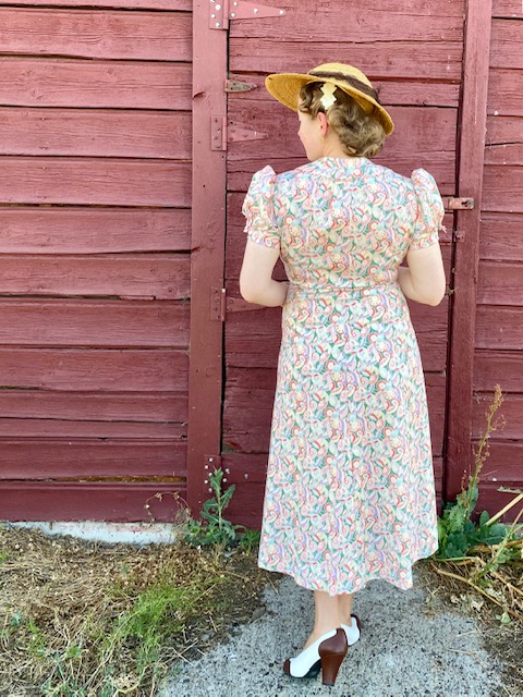 Because the print was so busy, I needed a pattern without a lot of details – something that most 1930s patterns often feature. So I pulled out a dress pattern that I've made twice before and knew would fit me well, without a lot of tweaking.