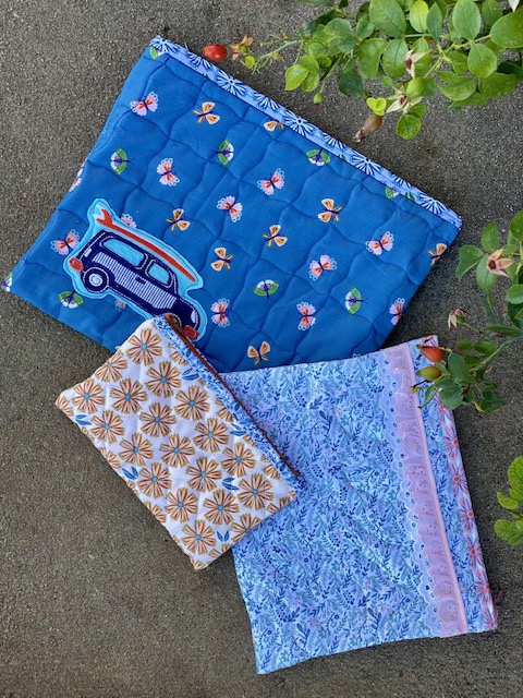 But as usual, with the main project finished and out of the way, I wanted to play with some of the other prints, so I also ended up doing some last-minute quilted zipper pouches.