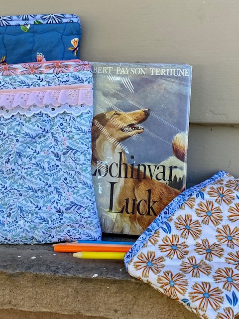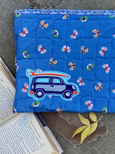 It was a fun little upcycled addition and gives a more elaborate look to a simple bag in minutes. (The blue butterfly was my favorite print in the line, so I saved it for the largest bag. :-)