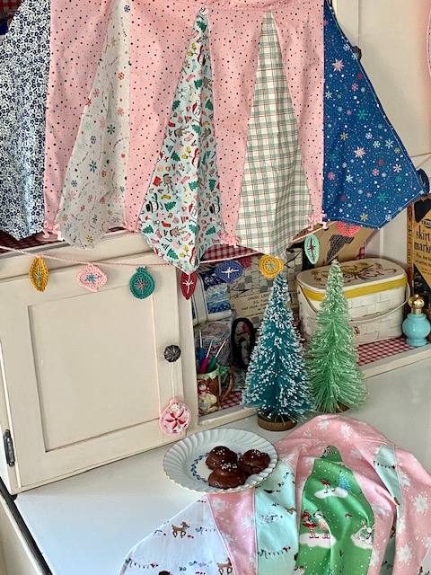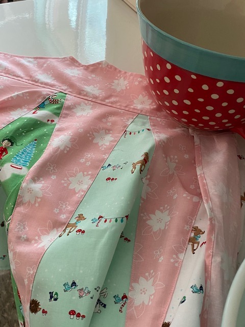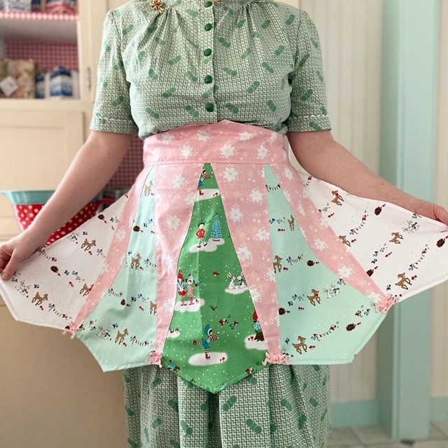 When I was doing my Christmas baking this year, I realized I have ZERO Christmas aprons, and something had to be done about that! Some time ago I saw an Instagram friend wearing an adorable apron. I asked her what pattern it was, and tracked down my own copy. I quickly paired it with some of my Christmas fabrics and stitched up a couple during Advent.