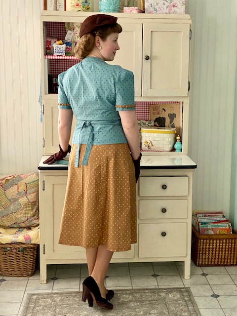 The skirt is quite a basic 1940s A line skirt and went together super fast. The blouse is also easy, but has a few cute details in the form of the tie belt inserted, and the little ruffle addition.