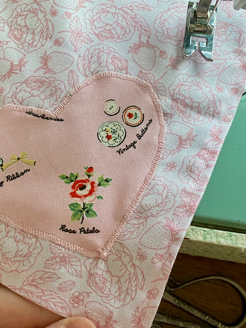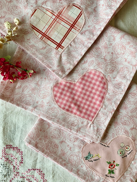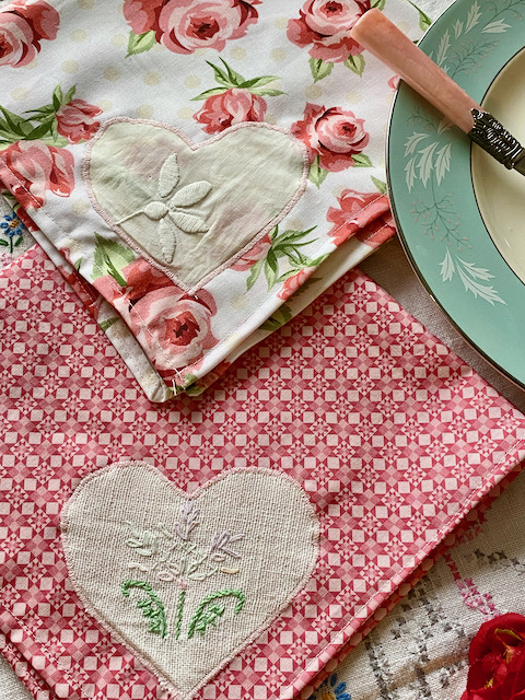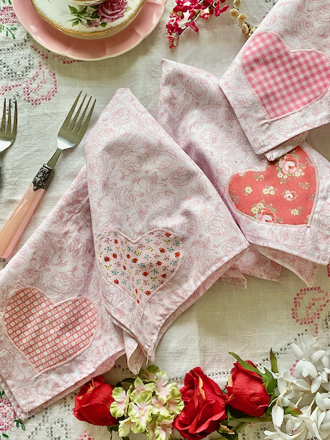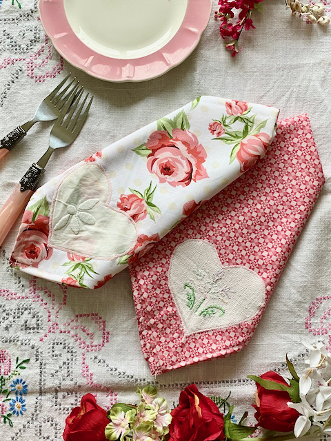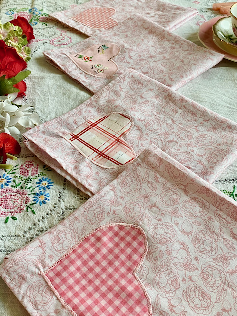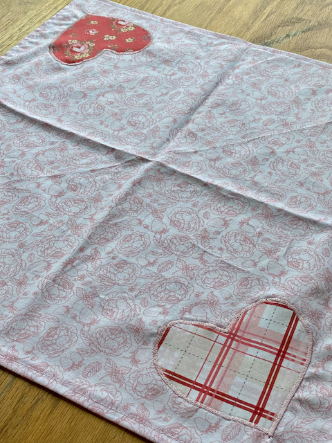 Repeat with any other hearts for as many napkins as desired! I chose to use coordinating fabric for hearts on 2 opposite corners.