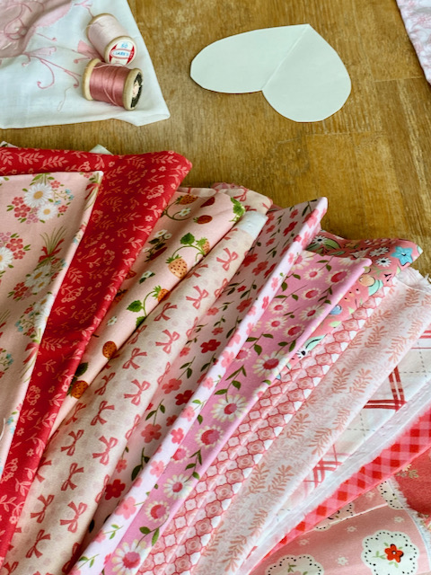 -misc. pink and red fabric for hearts (can use charm squares, or just scraps!)
