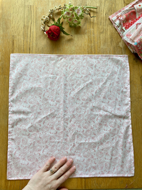 -1 18" square piece of fabric per napkin (I'm using Berries & Blooms background here by Poppie Cotton)