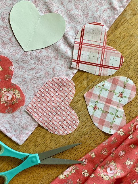 Once you decide on how many hearts and where to put them, time to pull out all your pink and red scraps!