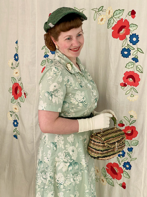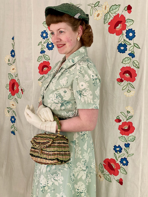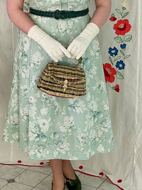 Isn't this basket purse cute? It's modern (found at a thrift store long ago), but works perfectly well for vintage. I love finding these cross-over styles that stand the test of time.