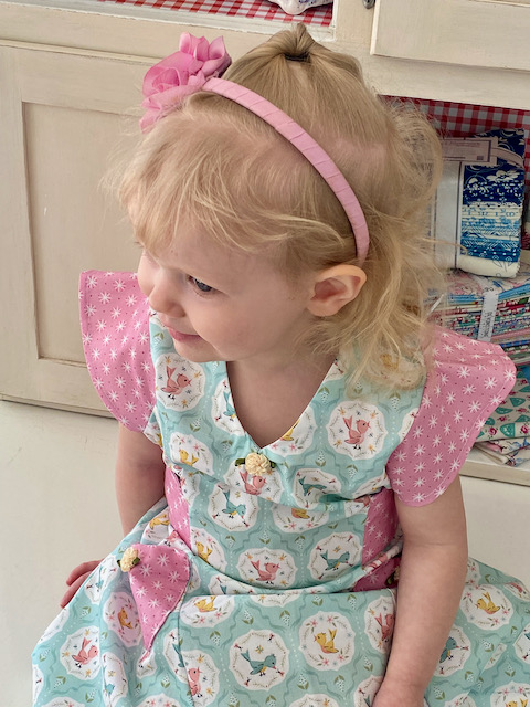 Plus it's very breezy and cool, so really perfect for the warm spring weather we have been having already. It would be a great summer sundress pattern, so I may make it again before she grows out of the pattern size.