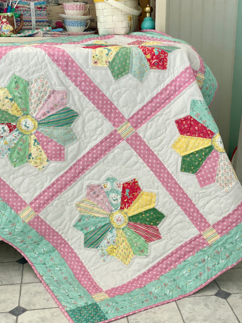 I used a heart stencil for the Dresden corners, and a diamond scallop border; otherwise just let the Dresdens guide the quilting, so there was less marking.