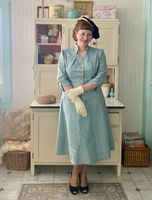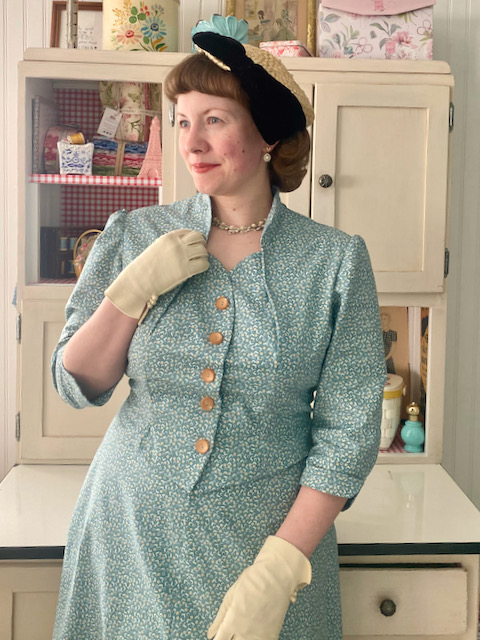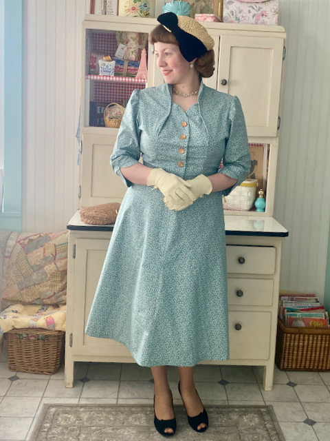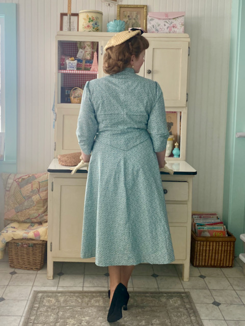 I really had to squeeze to get everything on, and the skirt is less full than it ought to be. There are a lot of pieces here, and I remembered again why I gravitate towards simple dresses that have less pieces!