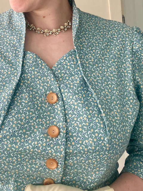When I lost weight I had to pass it on, but revisited the top pattern years later as the base for my wedding dress jacket. Now it was time to make it again, this time a simpler version in quilting cotton as a spring suit.