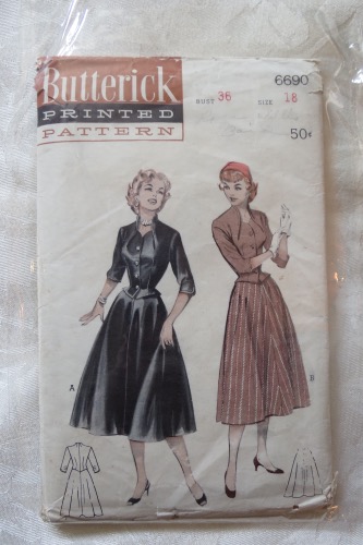 Back when I first started sewing with vintage patterns, I made an outfit using this 1950s pattern and some vintage drapes I had picked up at a yard sale (wish I had them now!). It was a stretch for my skill level for the time, and I remember it as being one of the times that began to open my eyes to the reward of taking pains with my sewing. As a result it turned out very nice, instead of my usual early sloppy jobs.
