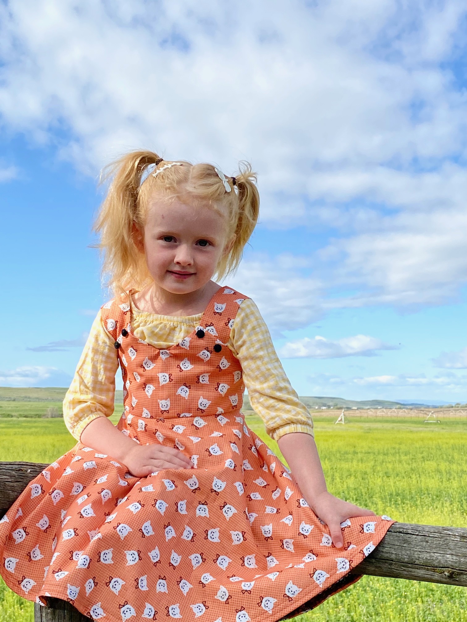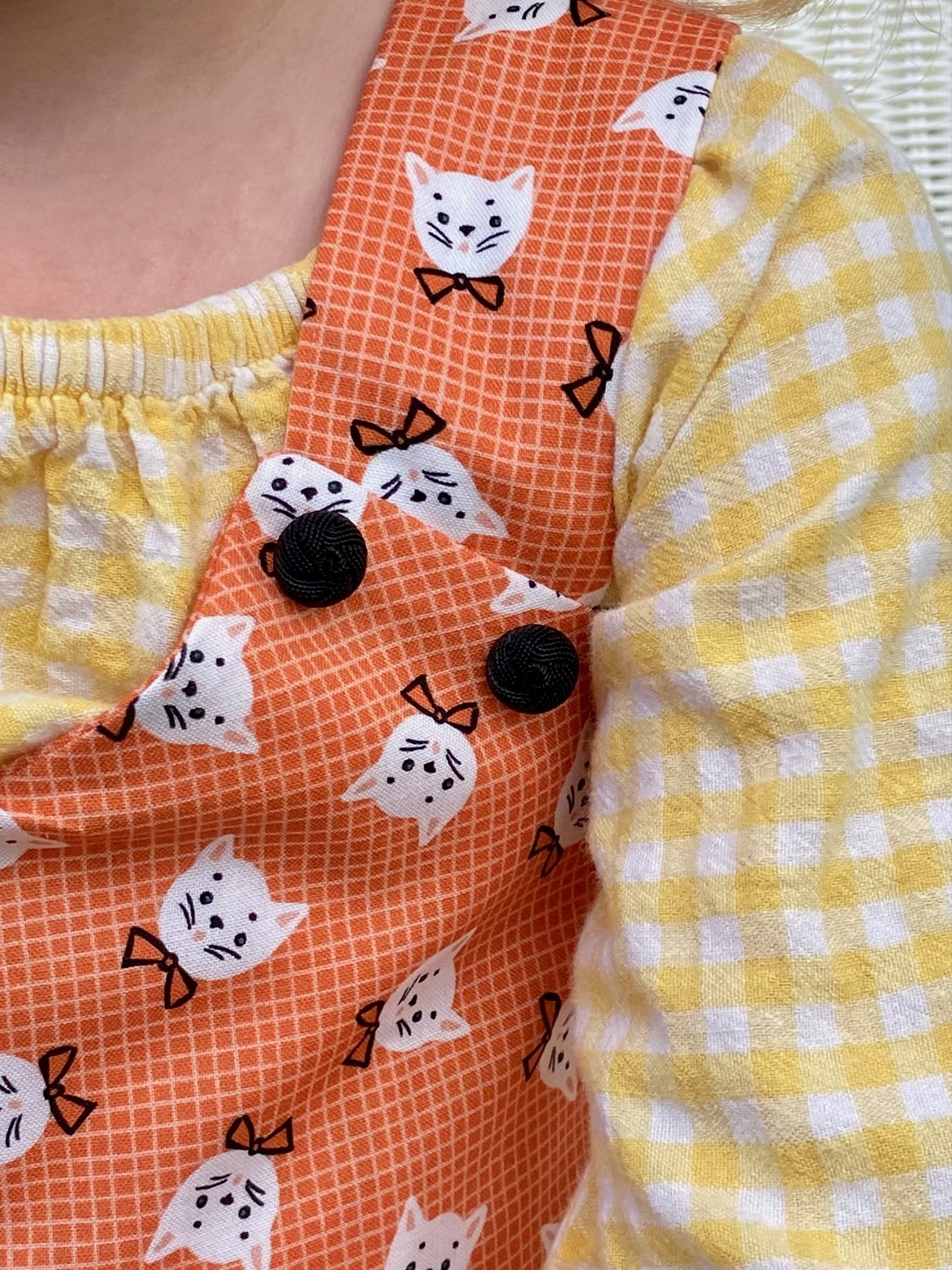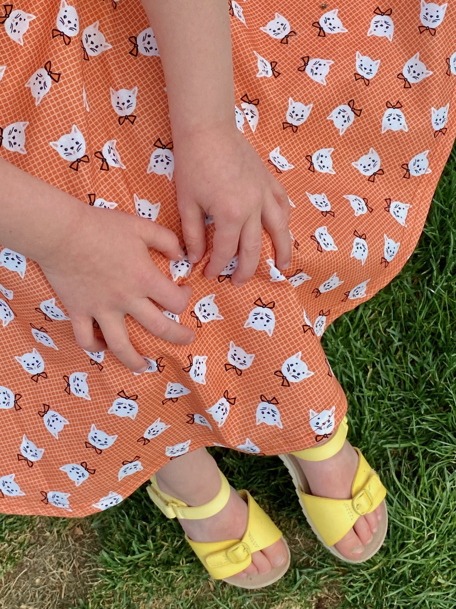 I definitely hope to make this pattern again. Think how cute it would be in wool plaid for the winter! But meanwhile this adorable kitty print is perfect for summer and fall…and since this girl needed some everyday clothes, it was quite a timely sew for me despite the fall fabric!
