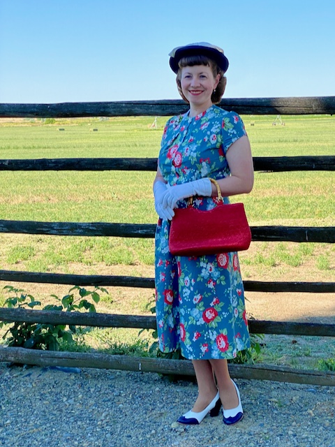 I have so many blue dresses and such a big stack of blue fabric, that it's quite easy to find something suitable for patriotic apparel. This year I decided to use this gorgeous large floral from the Mona fabric line called Dwell – one of my favorites, and it's now starting to go on clearance so I snagged some.