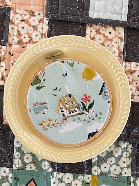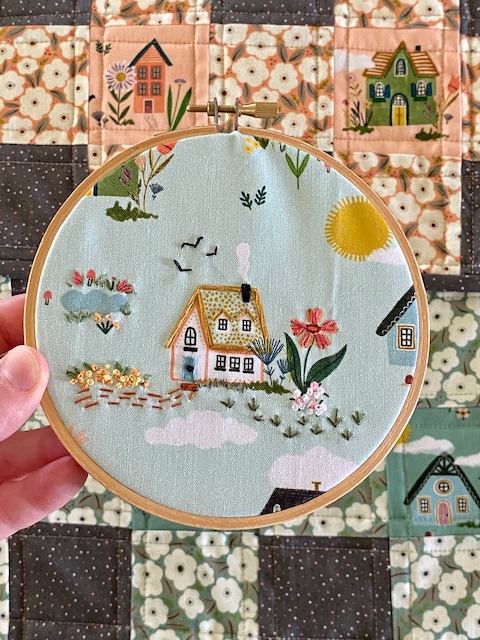 For another small project, I took my favorite little cottage and embellished it with freehand embroidery. It adds some cute texture and detail.