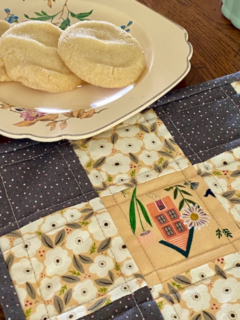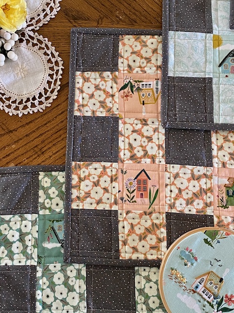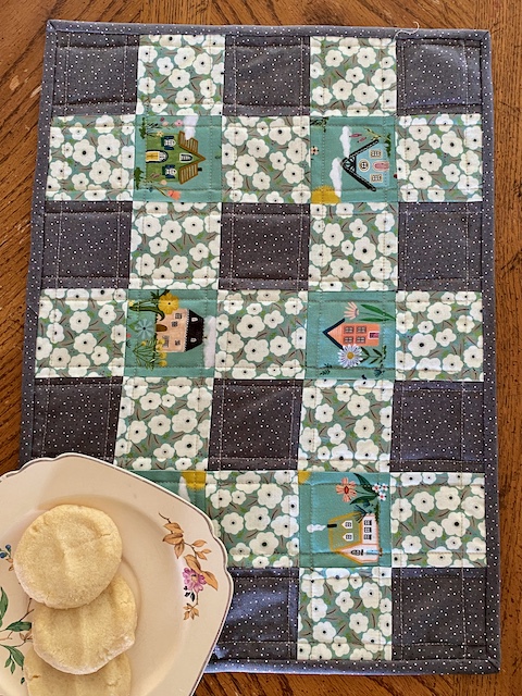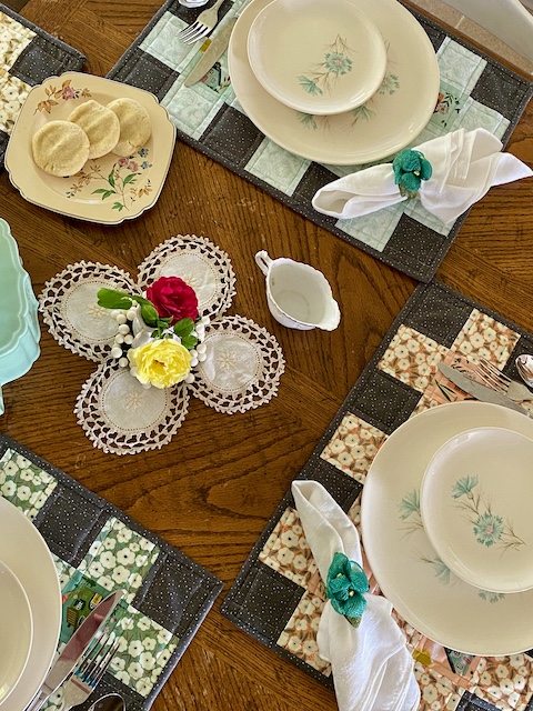 Of course the little cottage prints called for fussy cutting, so I featured them along with some coordinating florals to make a set of 4 gingham placemats.