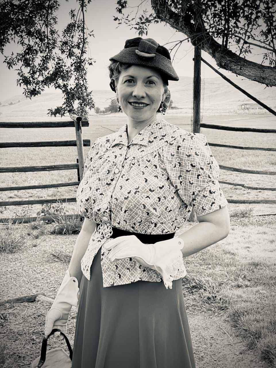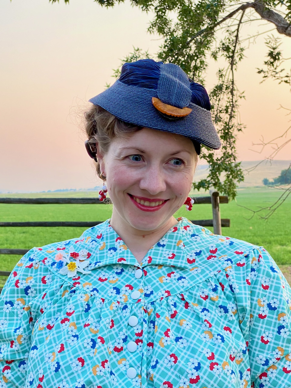 The hat is sadly too small for me, so I intend to list it on Etsy, but I had to get one set of photos with it first. The details and bakelite buckle are just too cute!