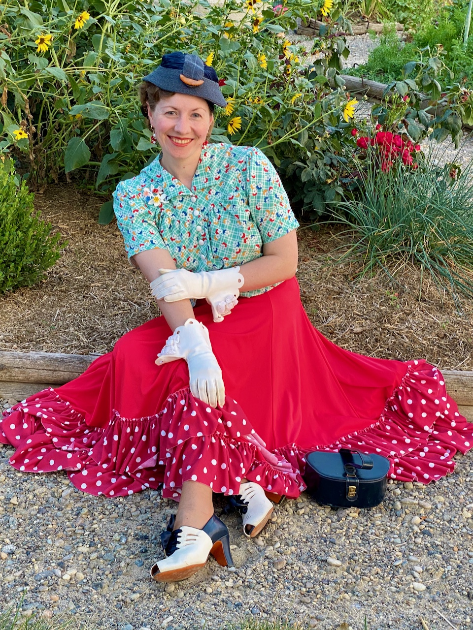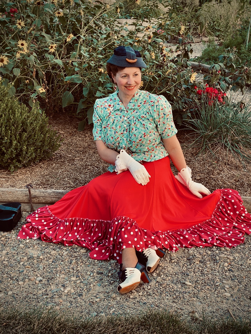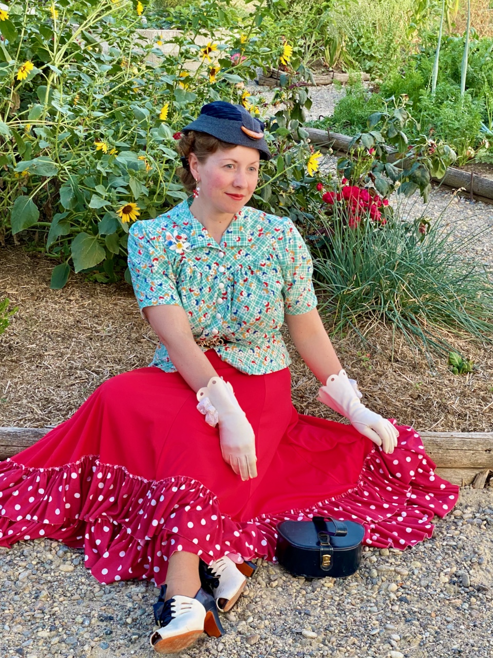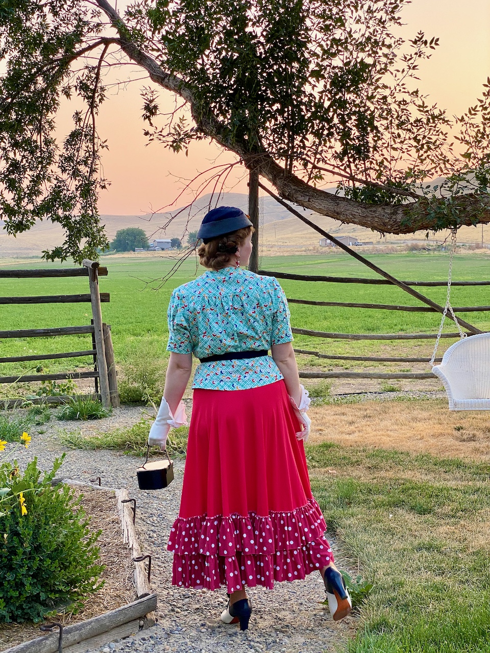 I paired it with a recently thrifted 1970s-does-1930s skirt that I picked up for $2 because I couldn't resist the polka dots, despite the polyester.