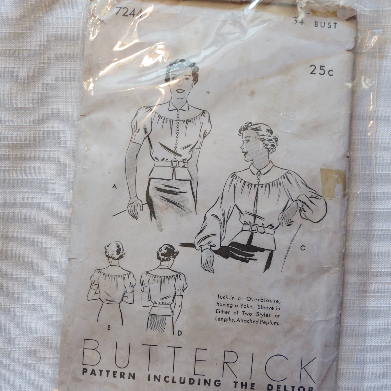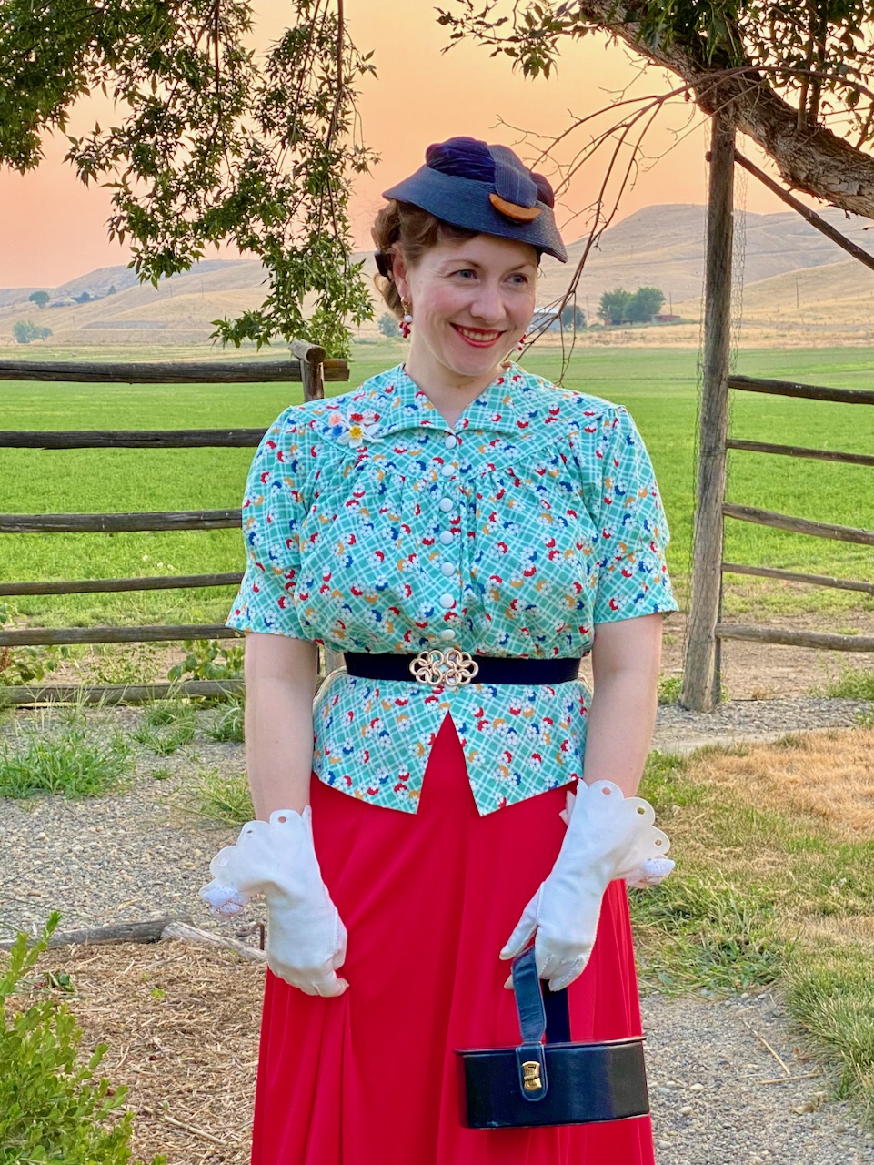 I had made this blouse pattern a long, long time ago when I was just starting to branch out into more complicated vintage patterns. It was a sloppy job, and I since got rid of it. When I got 1 1/2 yards of this super cute repro print recently, I decided to pull it out again.
