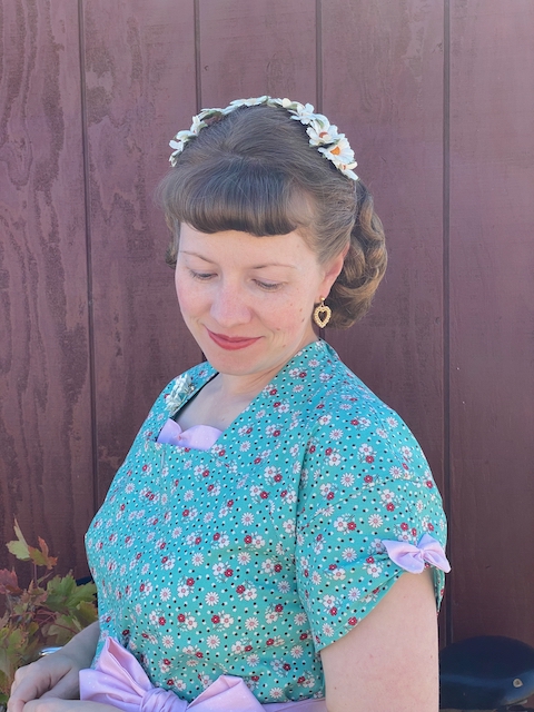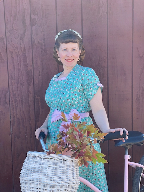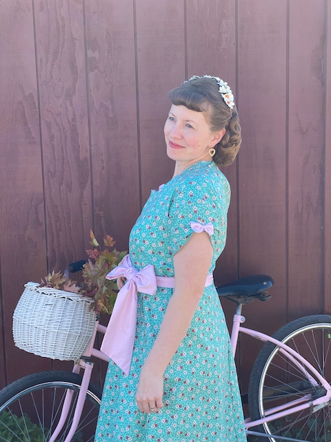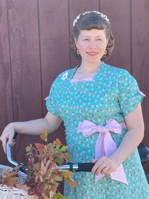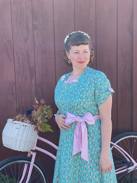 I absolutely loved this repro fabric by Riley Blake Designs from the recent Lori Holt fabric line called Mercantile. It took me a while to decide on a pattern and sew a dress with it, but it's just the cutest!