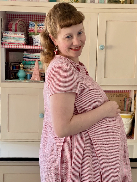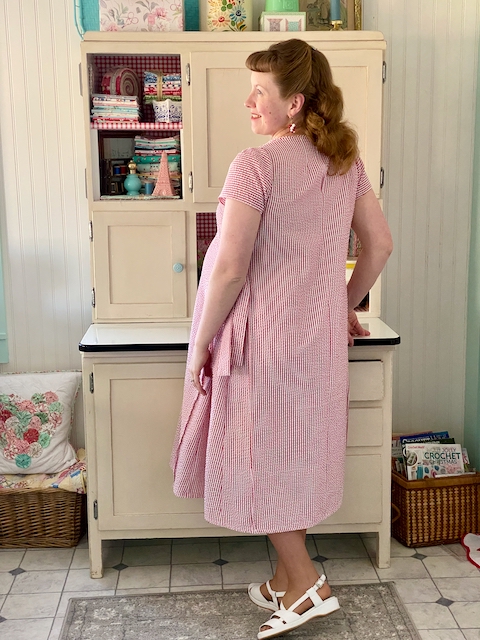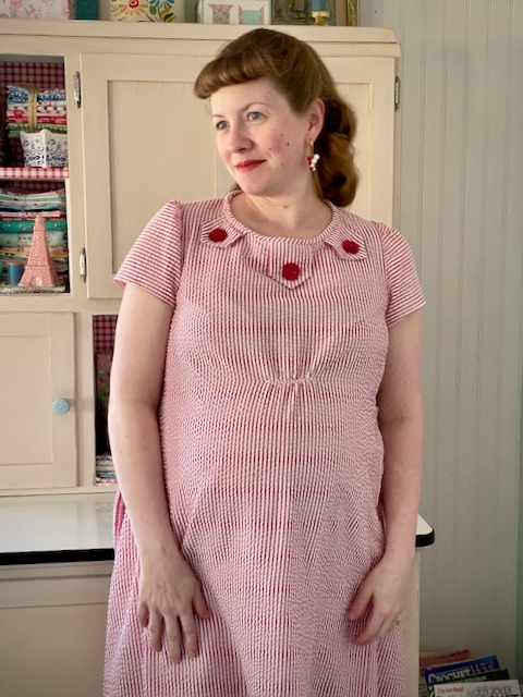 It was a trial version of a new pattern, so I picked a fabric that I didn't mind making a trial with – and also one that wouldn't need ironed. Seersucker is nice for that, and comfy to wear, but definitely has more stretch when sewing. I was glad that this pattern was not a precise or detailed one.