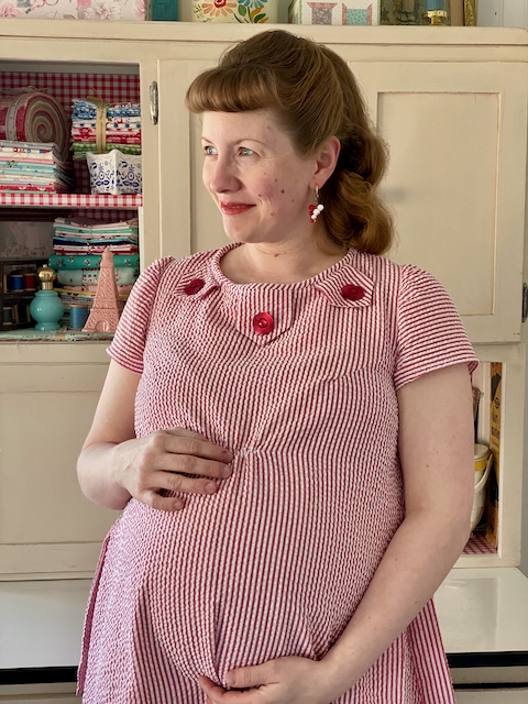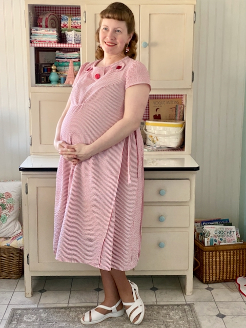 As you can see, even with my tummy at its 40-week largest and the ties at their tightest, there is still plenty of room. I think if I wear it again, I'll put another strand of elastic in the back to help pull in some of that fullness, like I did in the front.