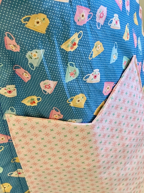 The pockets were made with contrast since I was out of fabric. I like the scalloped top.