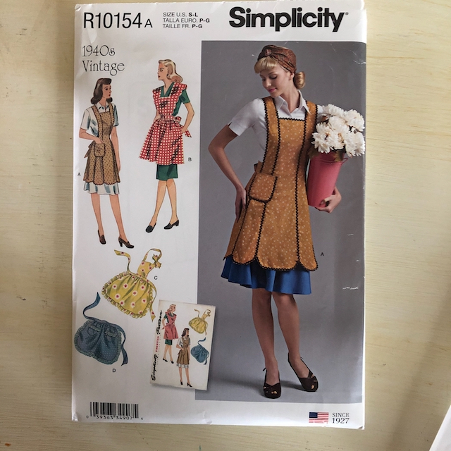 Apron number 2 used the yellow version of the pictorial print. This time I used a vintage reprinted pattern, but again adapted it quite a bit. I've made the entire pinafore before, but for this one to fit my yardage I made it a half apron size and omitted one of the scalloped gores.