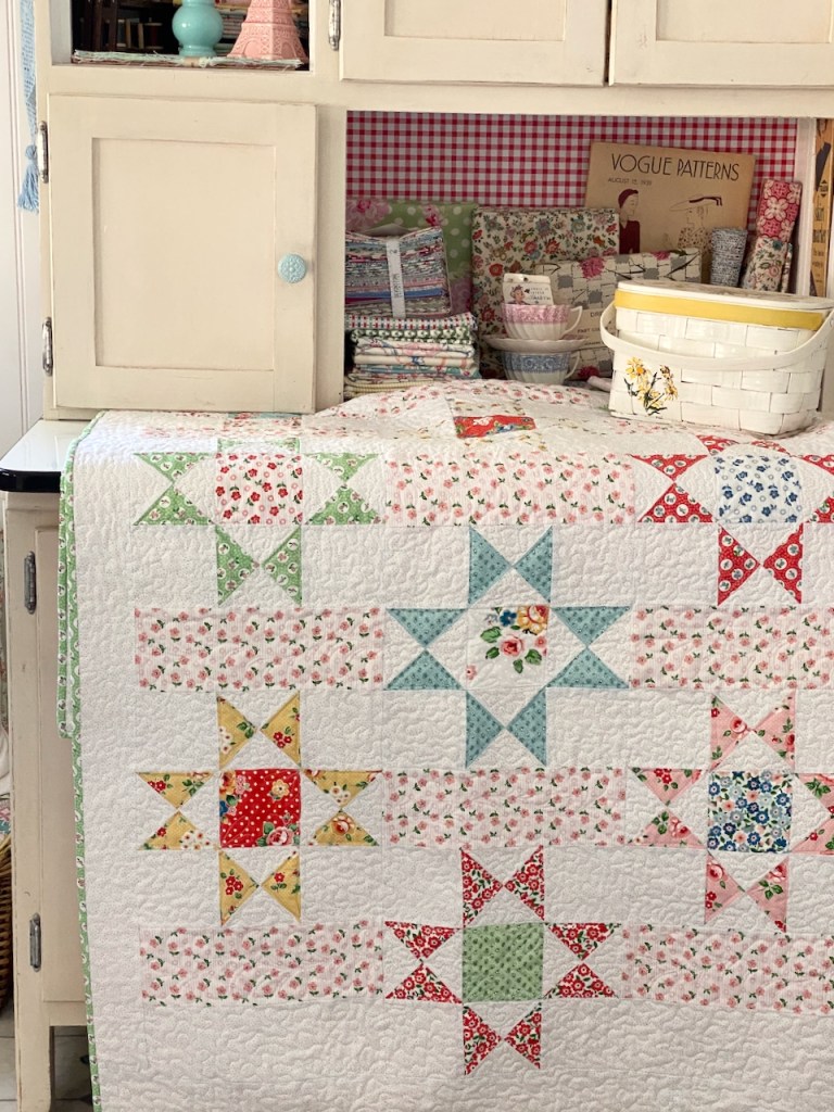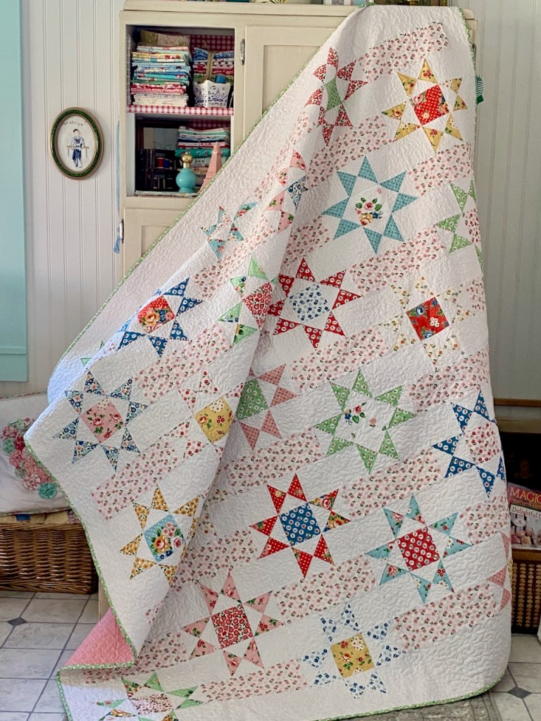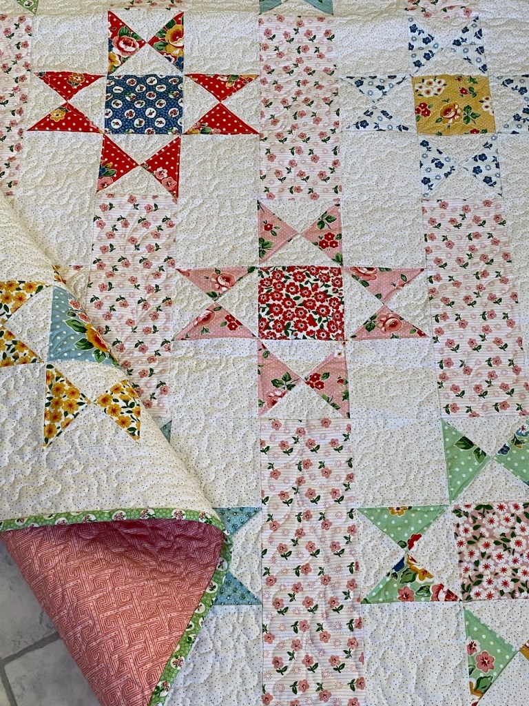 It went super quickly. The stars were fun to make, with a genius fast and easy method for making quarter square triangles.