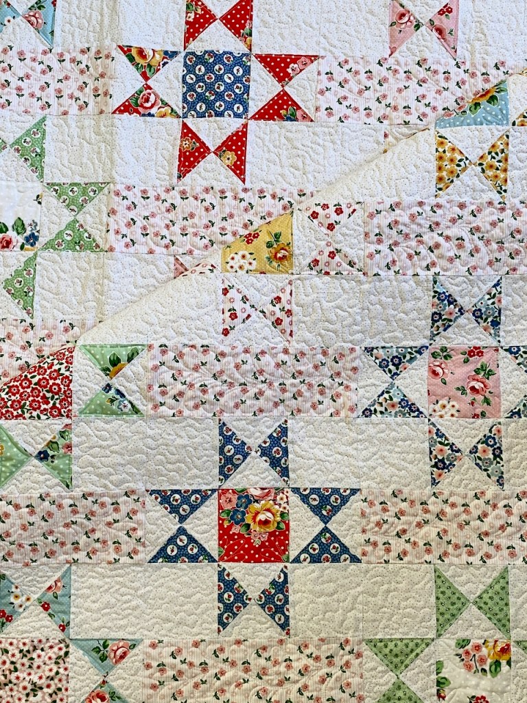 But of course, as always, I had to find a way to use a lot more of the beautiful prints available, so I made a pattern I’ve wanted to make for a while – Under the Stars by Camille Roskelley.