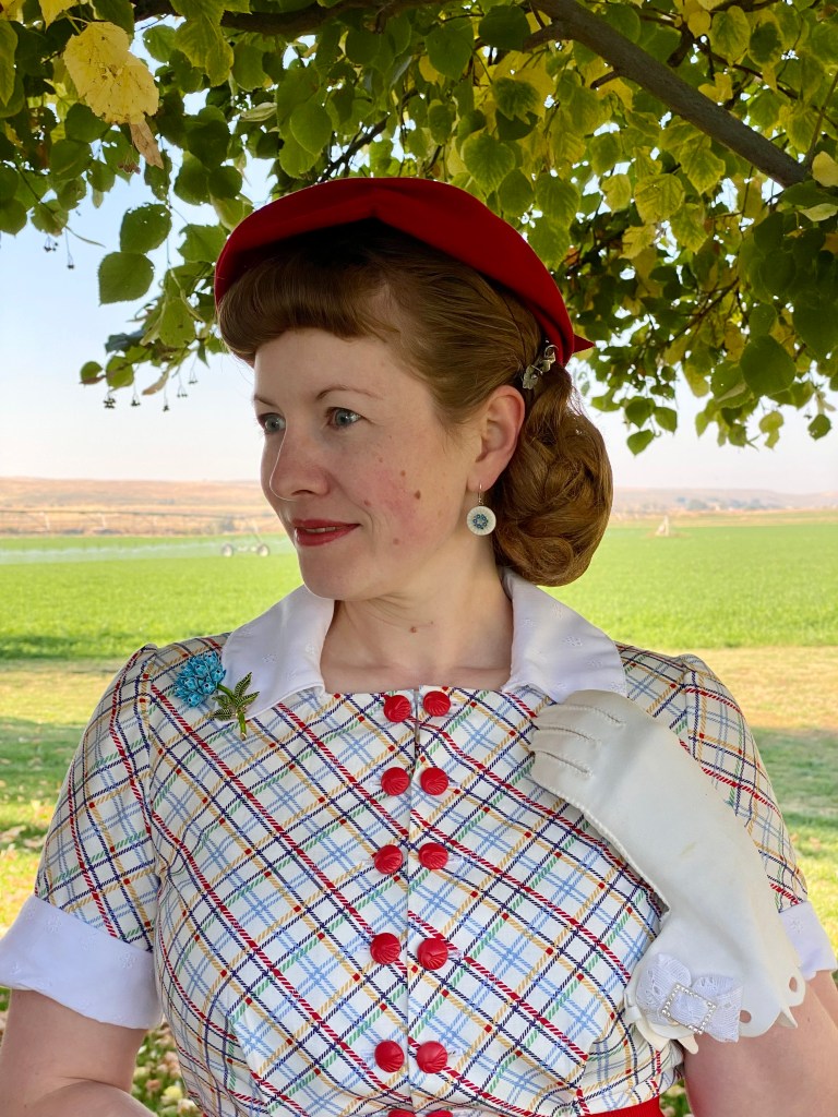 I’ve made this pattern at least 3 times previously and have loved it as it’s a rare 1930s pattern that fits me well. I knew it would be a great fit for this super fun repro plaid fabric from The Timely Tailor.