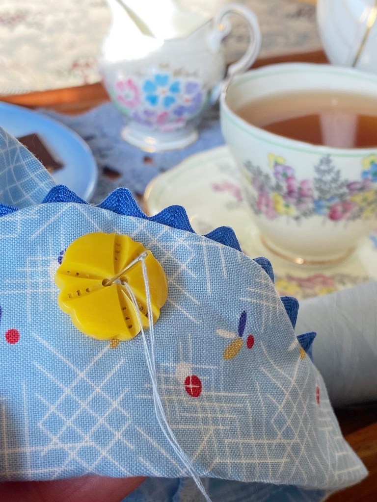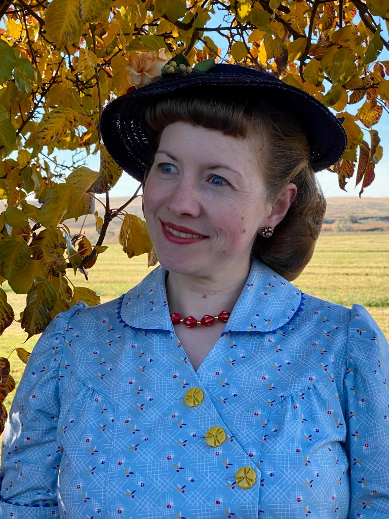 It has such a fun geometric and colorful dot pattern – very typical of the 1930s. There are several colors available but this was my favorite. I paired it with a relatively new 1930s pattern in my collection, which includes some fun details.