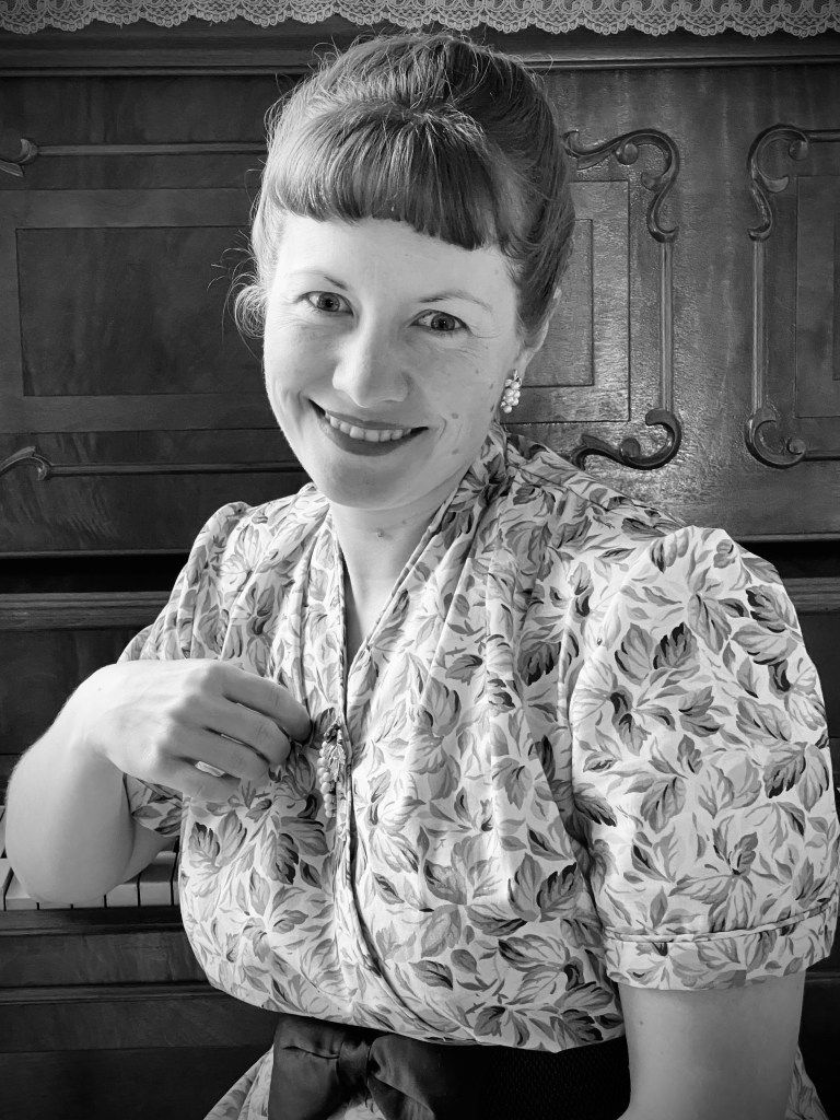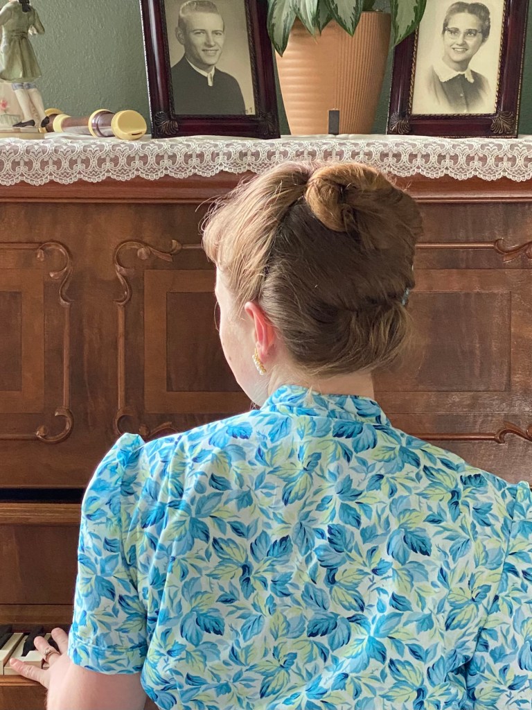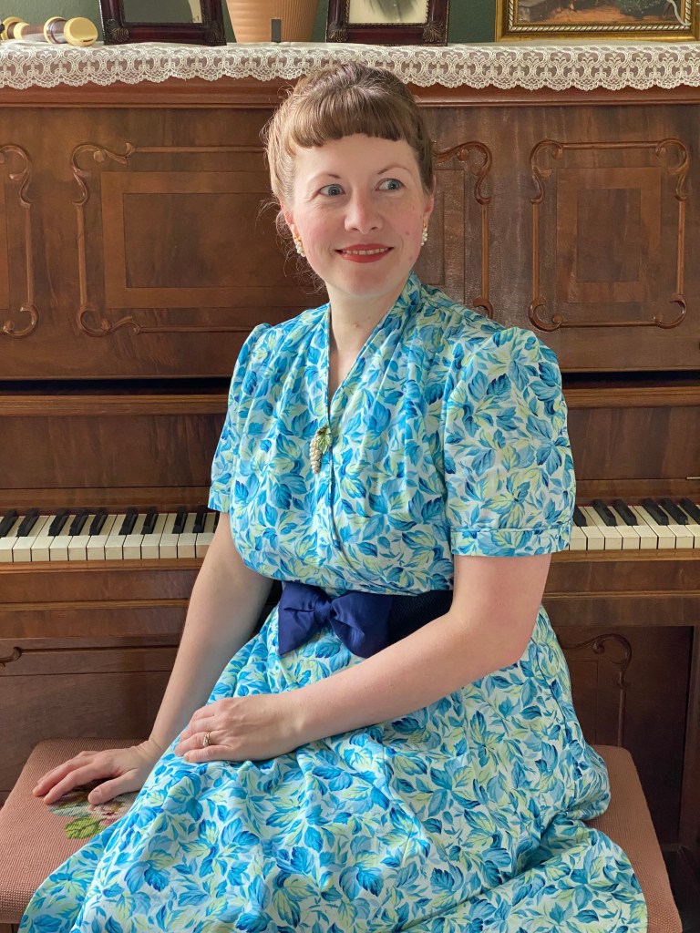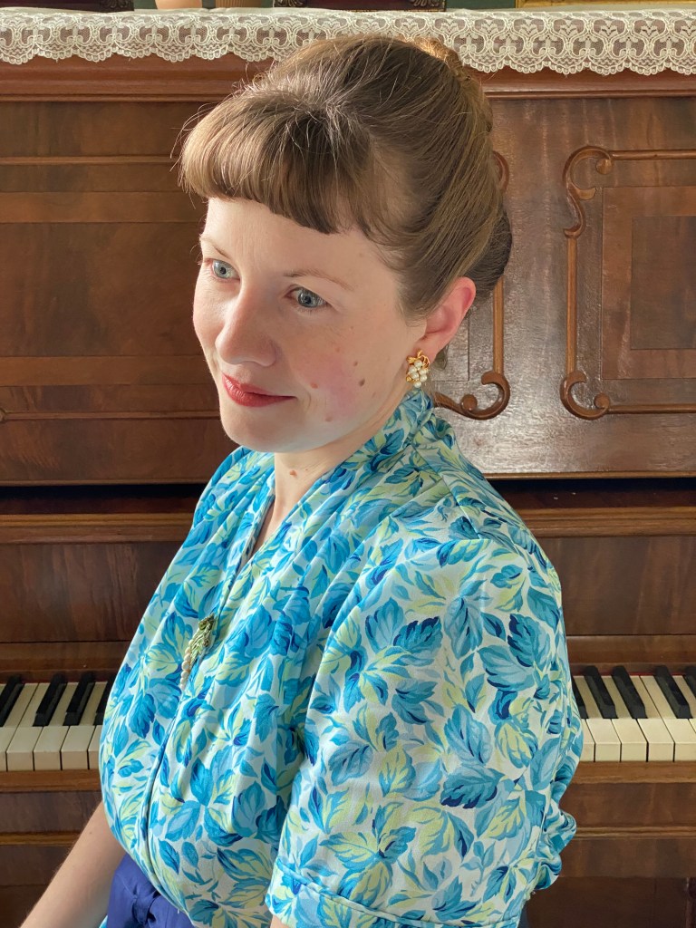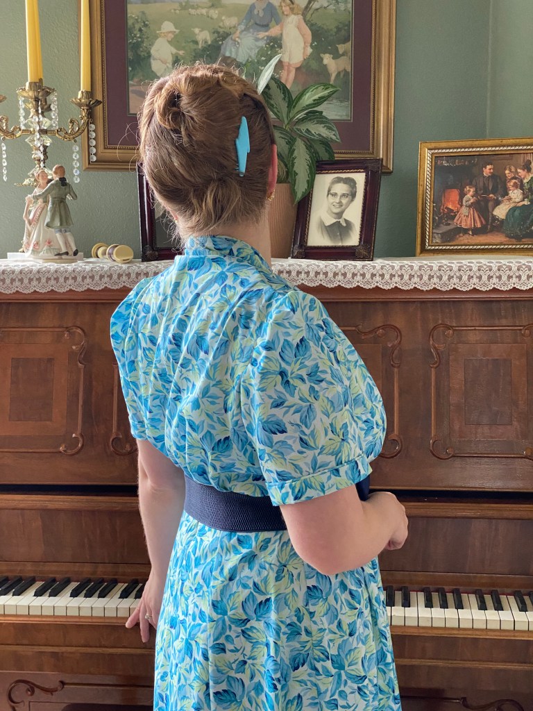 Since this is a late 1950s pattern I tried to do a bit more of a 1960s bouffant updo for my hair. Didn’t work too well, but it’s still pretty.