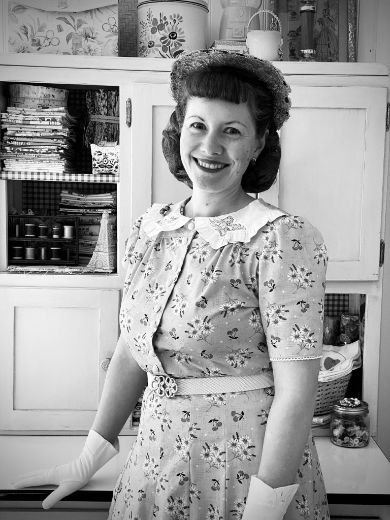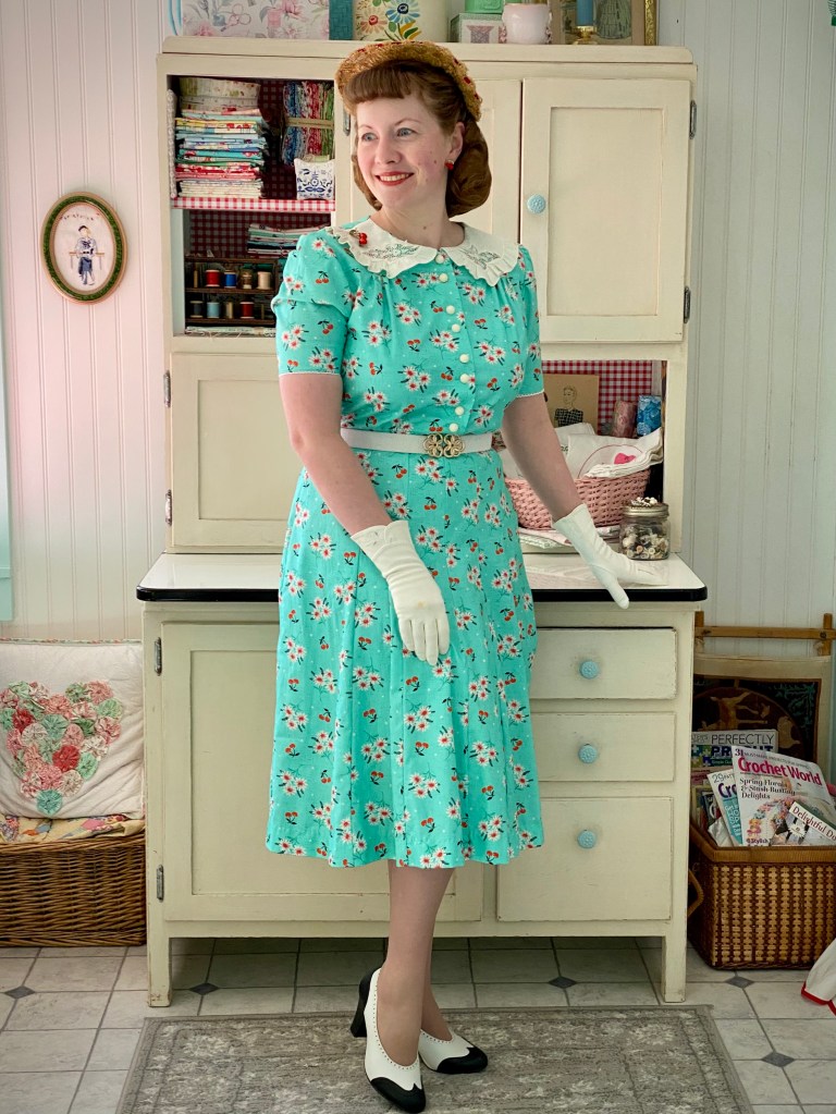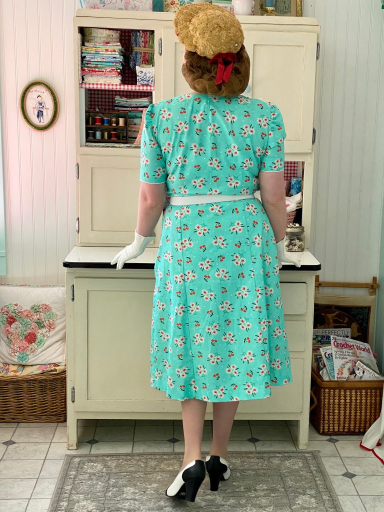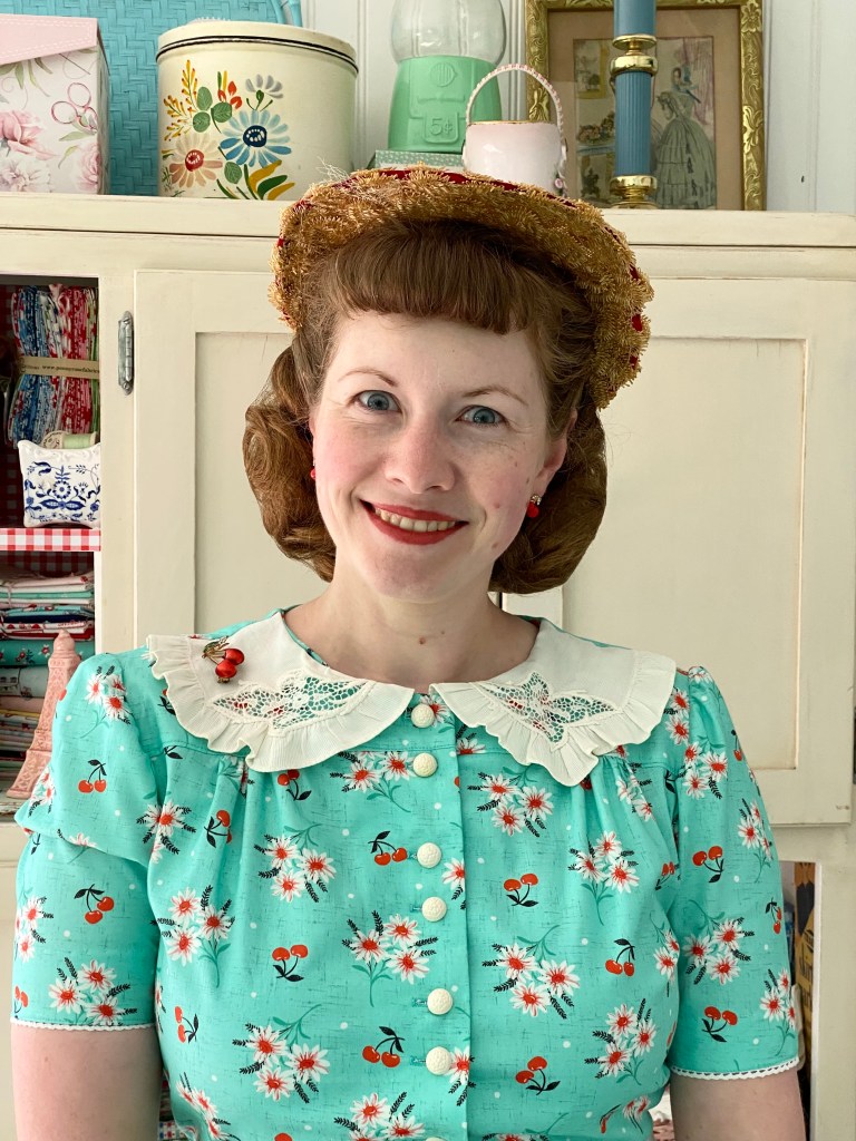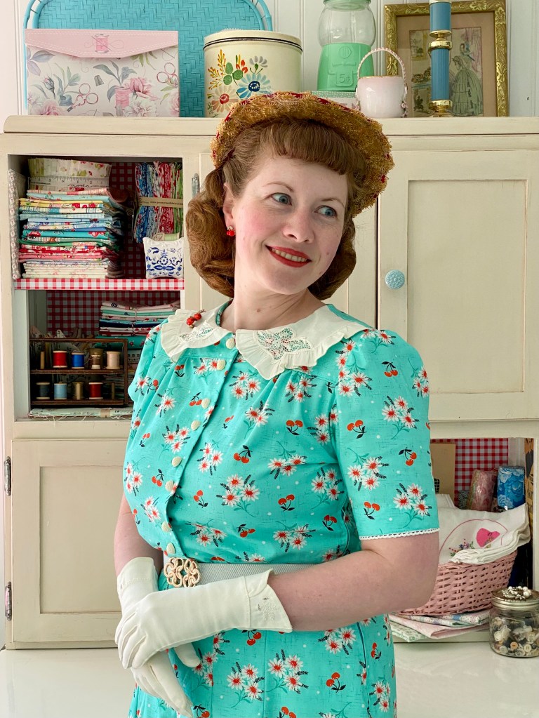 I paired it with a 1940s pattern I hadn’t made for probably 11 or 12 years, but instead of a self collar and ruffle (which is hard to get to look right with quilting cotton) I opted for this lovely vintage collar which I’ve had for ages, waiting until the right project. I think it was a perfect match for this one!